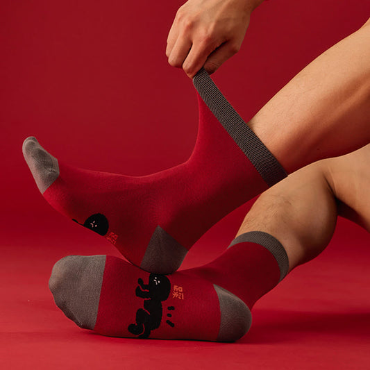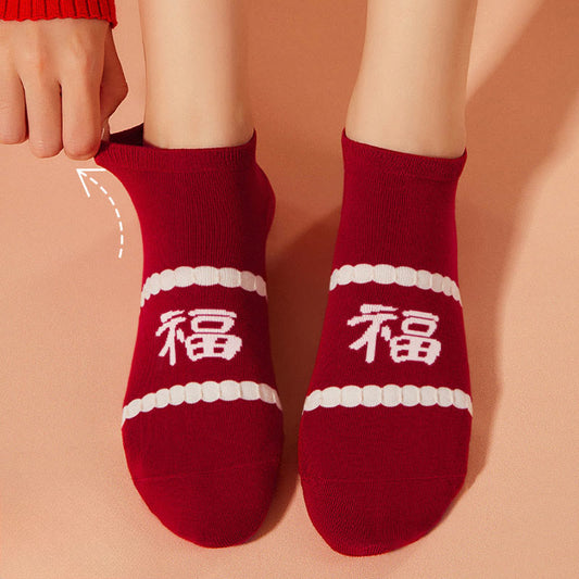 Cotton New Year Blessings Quarter Socks(6 Pairs)