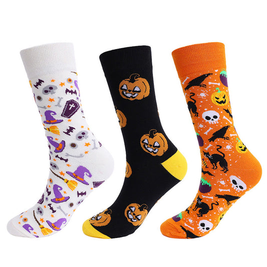 Pumpkin Skull Halloween Crew Socks(3 Pairs)