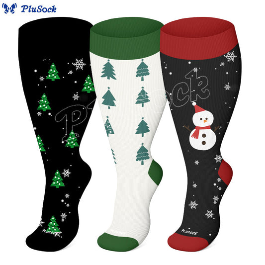 Plus Size Christmas Tree Snowman Compression Socks(3 Pairs)