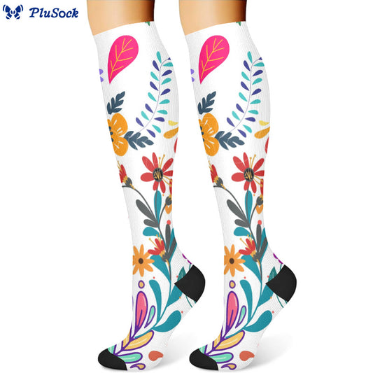 Cute Cat Bird Flowers Compression Socks(6 Pairs)