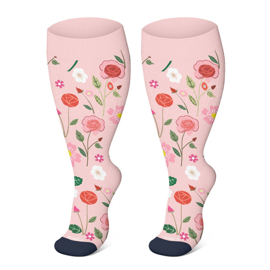 Plusock Plus Size Elegant Flowers Compression Socks(3 Pairs)