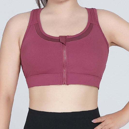Plus Size Zipper Front Closure Sports Wireless Bra