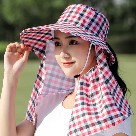 Mask Removable Plaid Pattern Sun Bucket Hat