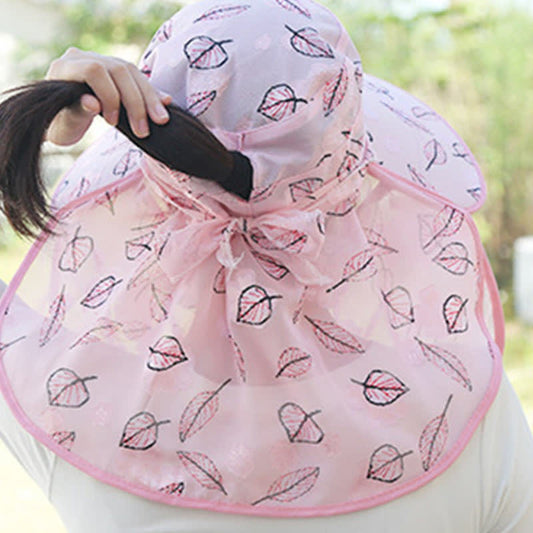 Leaf Print Large Brim Shawl Mask Sun Hat
