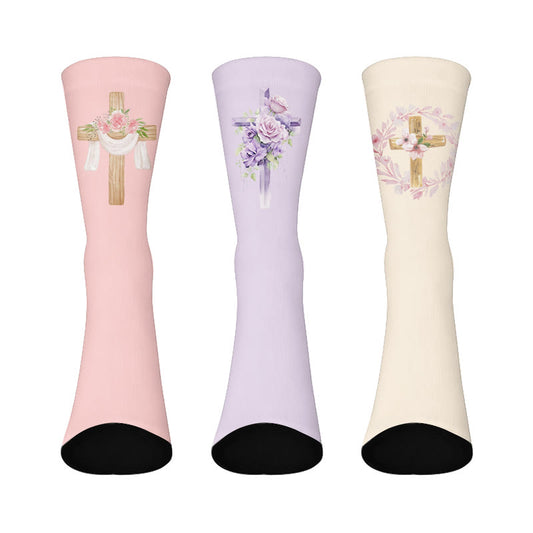 Floral Cross Faith Quarter Socks