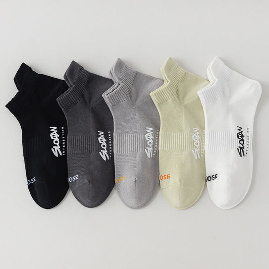 Letter Print Mesh Thin Sport Ankle Socks(5 Pairs)