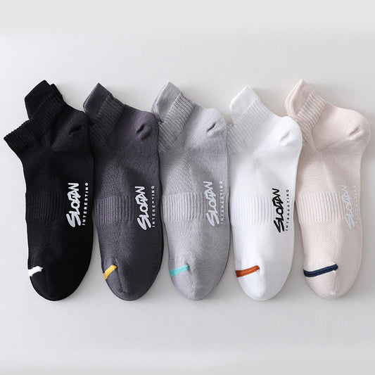 Letter Printed Thin Cotton Sports Ankle Socks(5 Pairs)