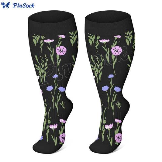 Plus Size Painted Flowers Compression Socks(3 Pairs)