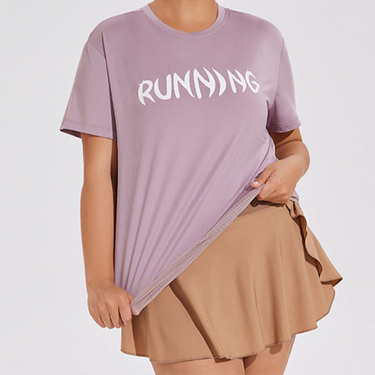 Plus Size Mesh Splicing Loose Yoga Short Sleeves Shirt