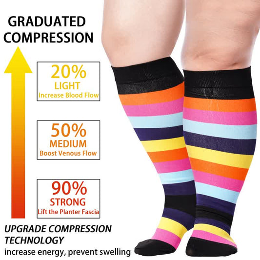 Plus Size Rainbow Print Compression Socks(3 Pairs)