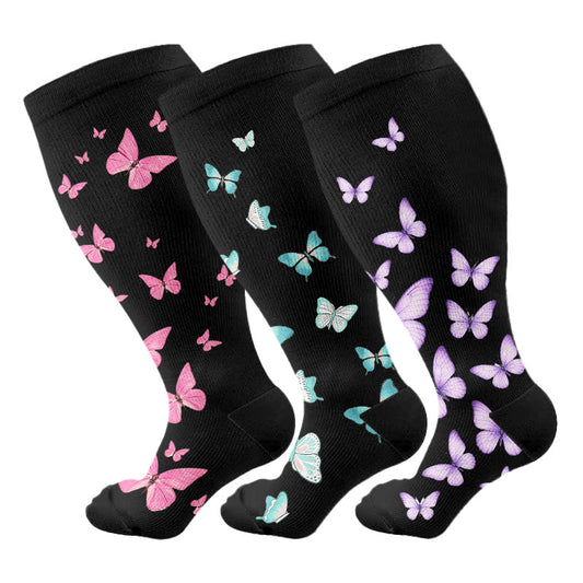 Plus Size Butterfly Print Compression Socks(3 Pairs)