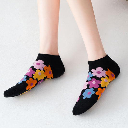Colored Flowers No Show Socks(5 Pairs)