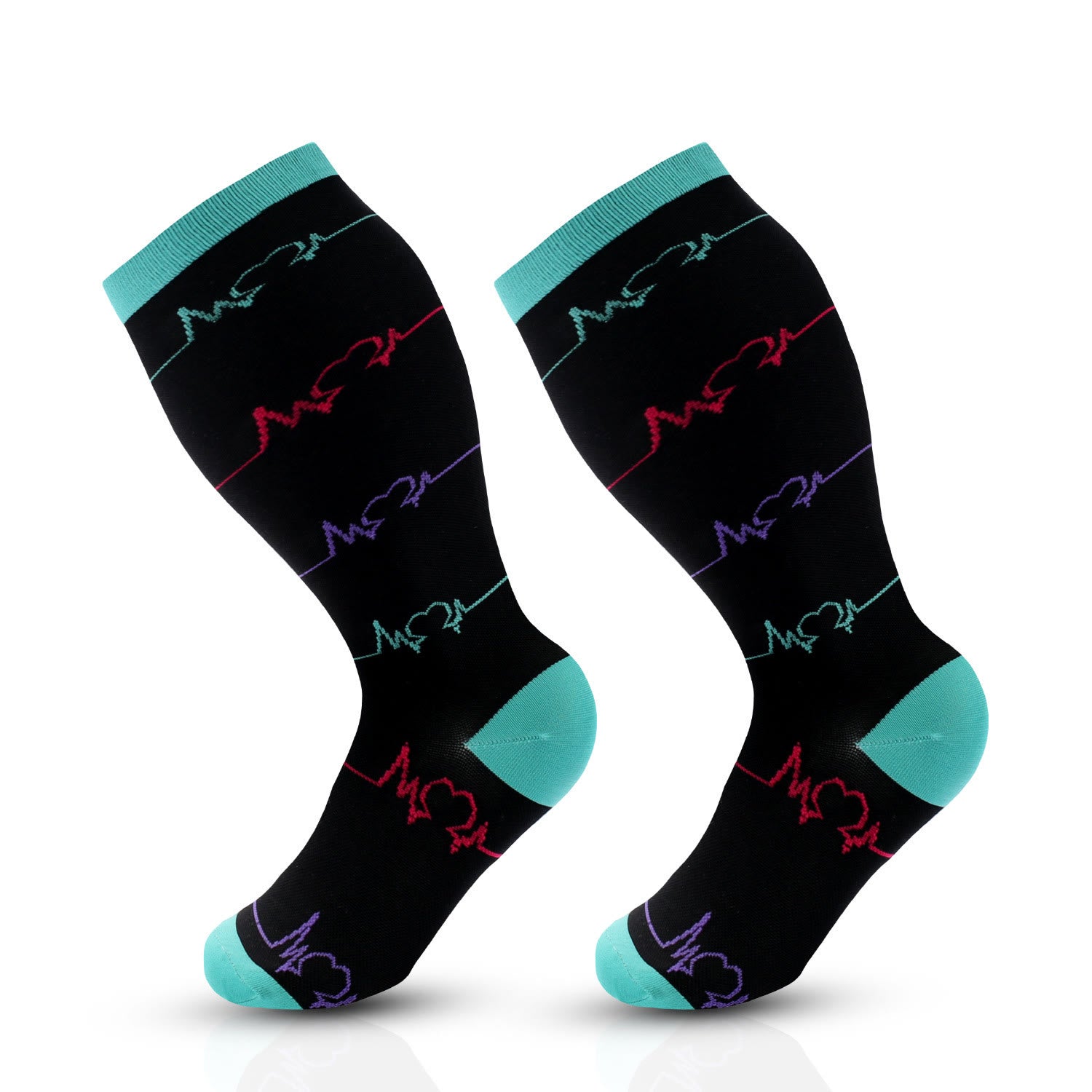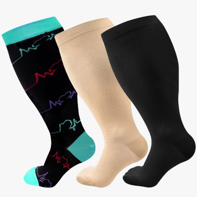 Blue Electrocardiogram Solid Plus Size Compression Socks(3 Pairs)