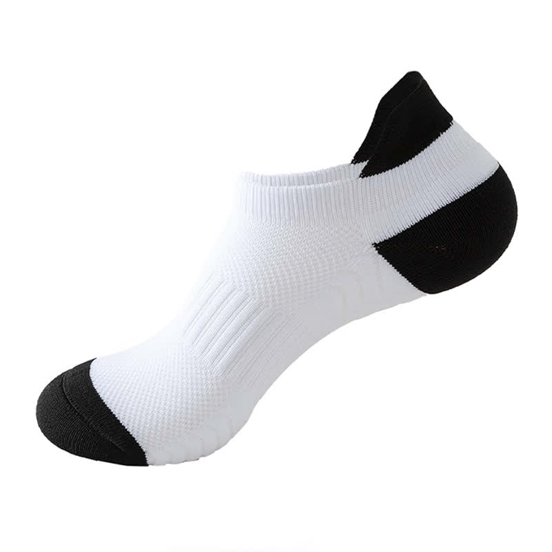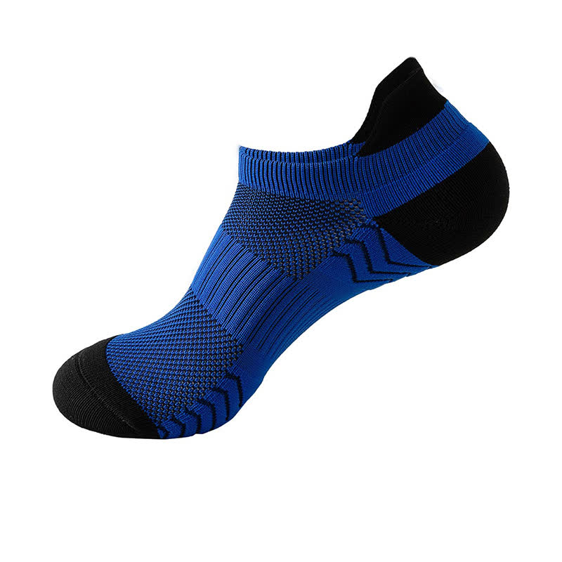These ankle compression socks feature a stylish color block design with breathable mesh panels for ventilation. The high-stretch fabric provides targeted compression and support, ideal for sports and everyday wear.