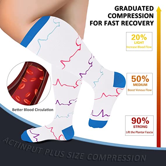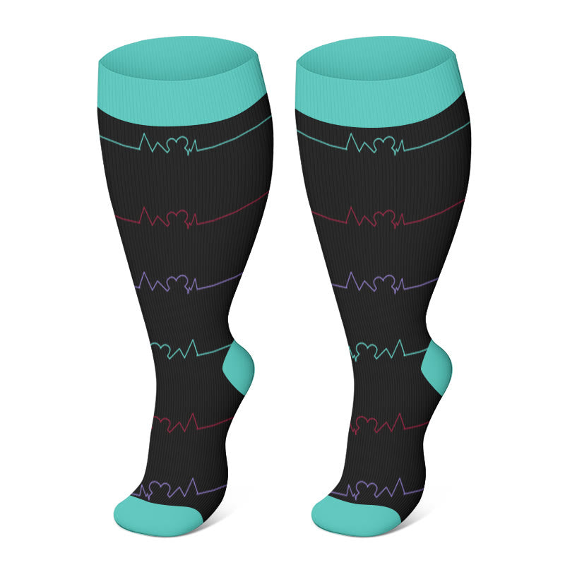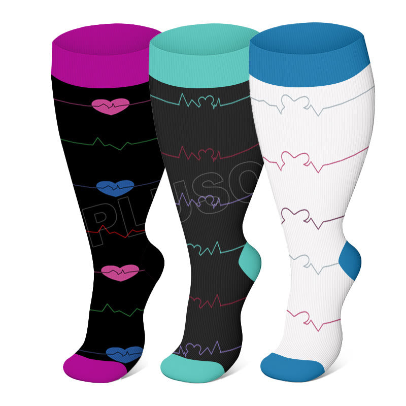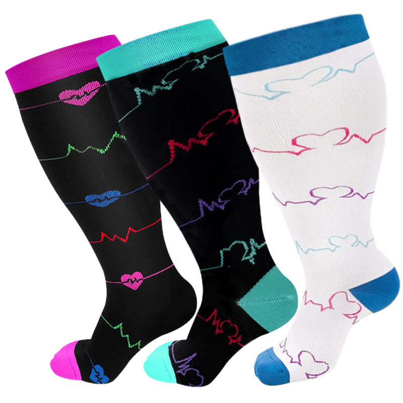 Electrocardiogram Pattern Plus Size Compression Socks(3 Pairs)
