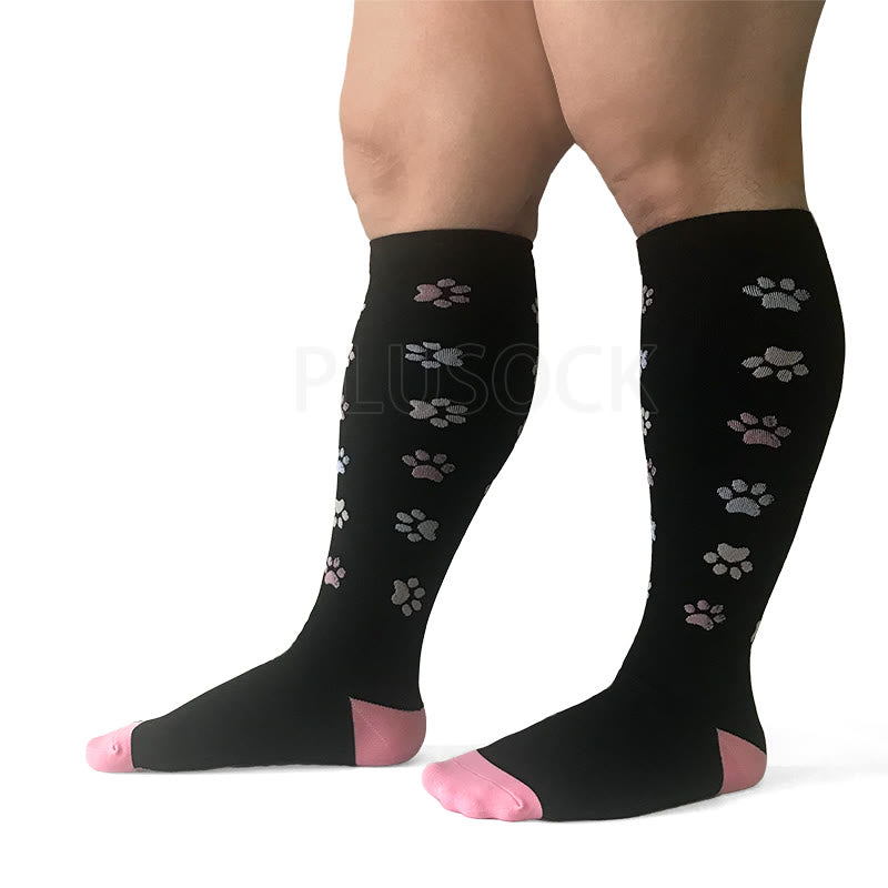 2XL-7XL Pink Dog Footprints Plus Size Compression Socks(3 Pairs)