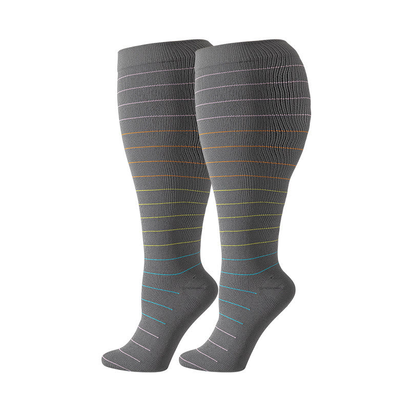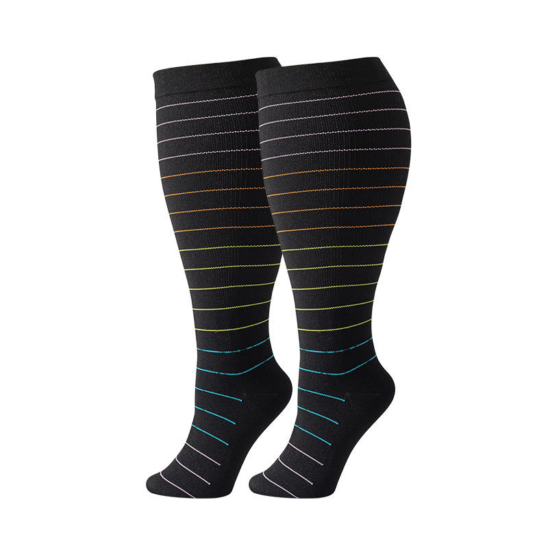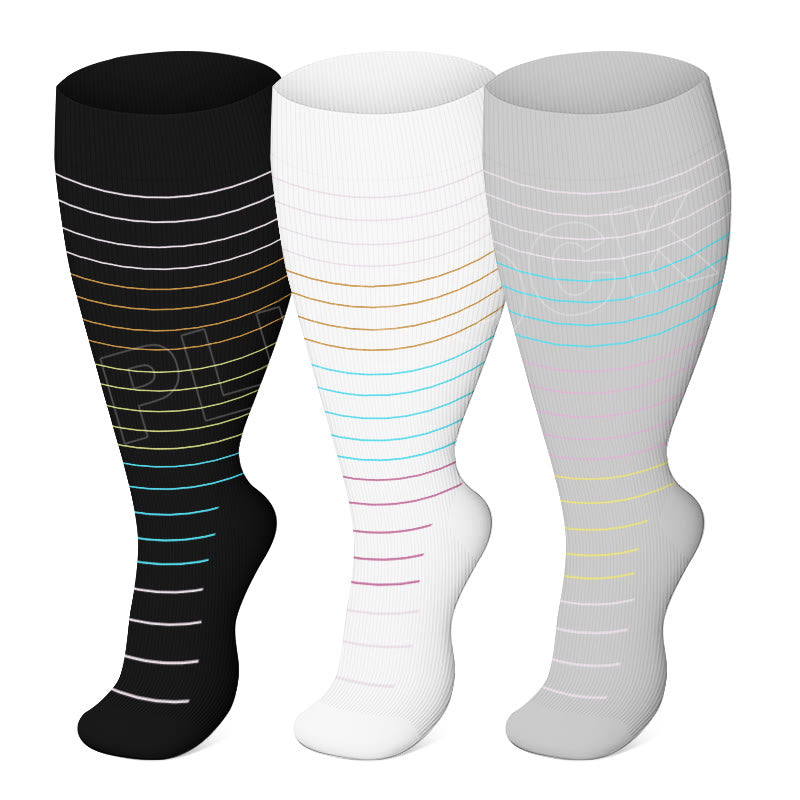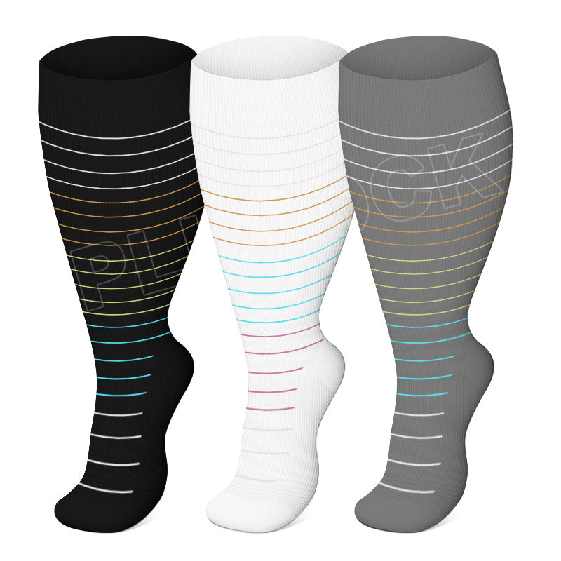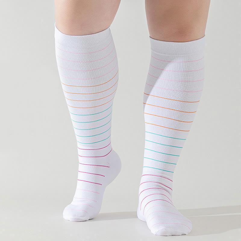 Plus Size Colorful Pinstripes Compression Socks(3 Pairs)