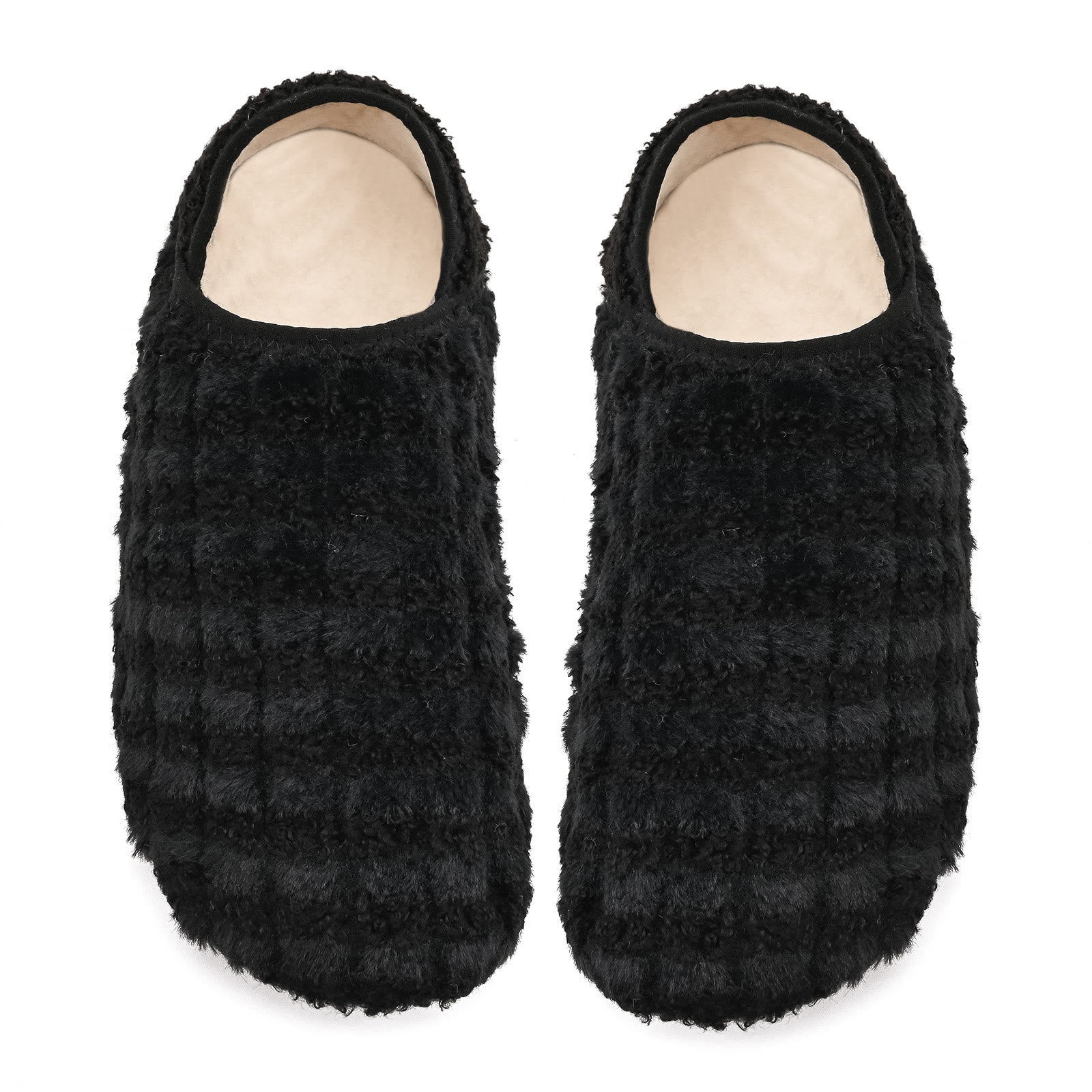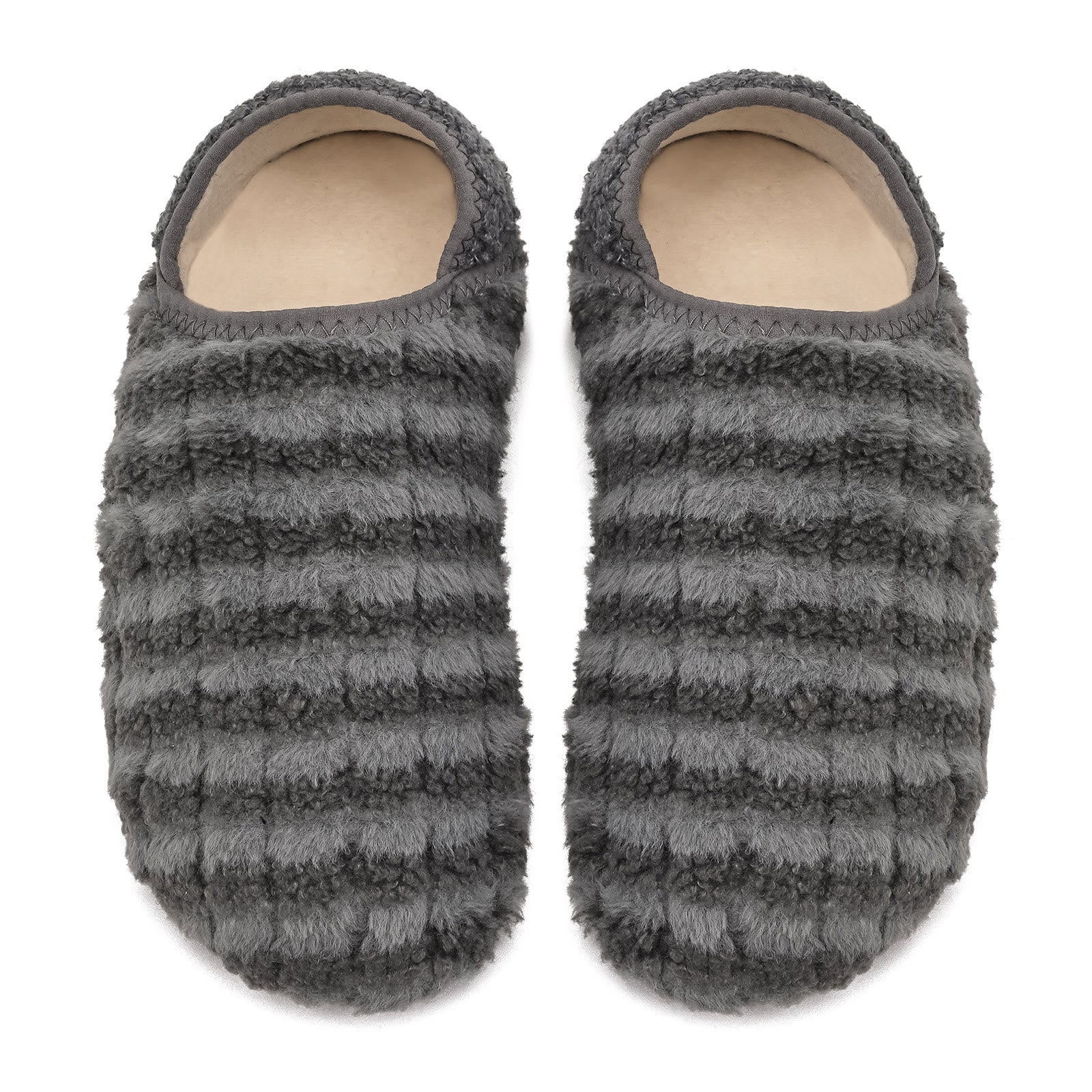 - Soft Upper and Synthetic Glue Sole: These slippers' upper features ultra-light stretch fabric that confirms the warmth but wicks moisture away to keep your feet from stuffiness. Enjoy the cushy and fuzzy faux fur house shoes whether you are barefoot or wearing socks. These men's and women's house slippers feature a soft synthetic glue sole for good traction on tile and hardwood floors, so walk around in slippery conditions without worrying about slipping.