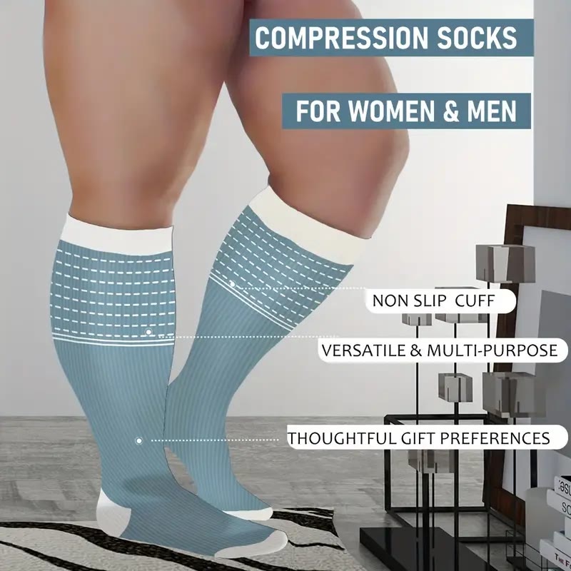 More comfortable than standard-size compression socks, these large compression socks bring you robust leg support, long enduring graduated compression, and ultra-comfortable wear of lightweight and breathable.