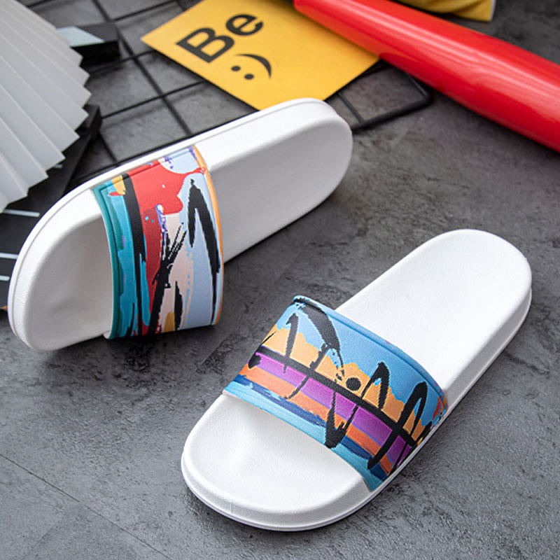 Plus Size Seaside Oil Painting Slides(2 Pairs)