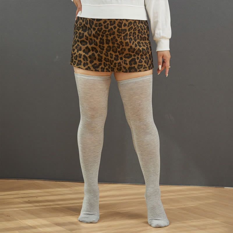 Plus Size Solid Color Thigh High Knee Socks(2 Pairs)