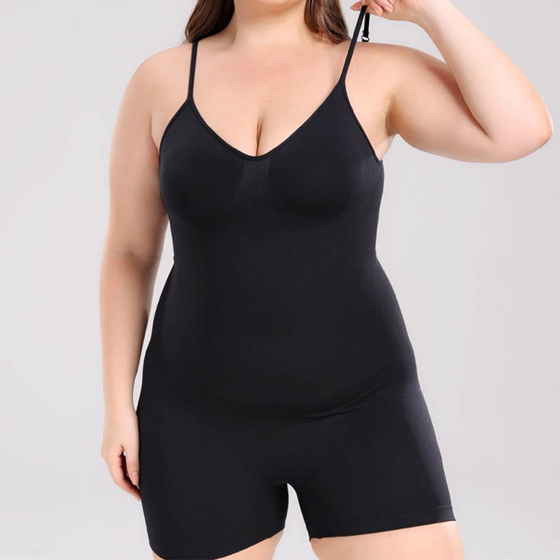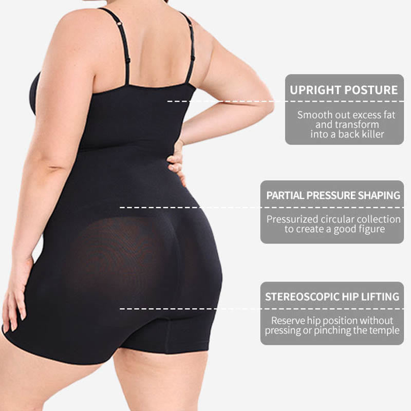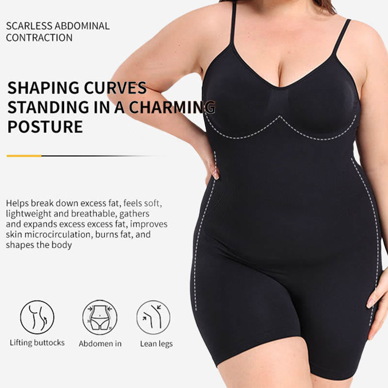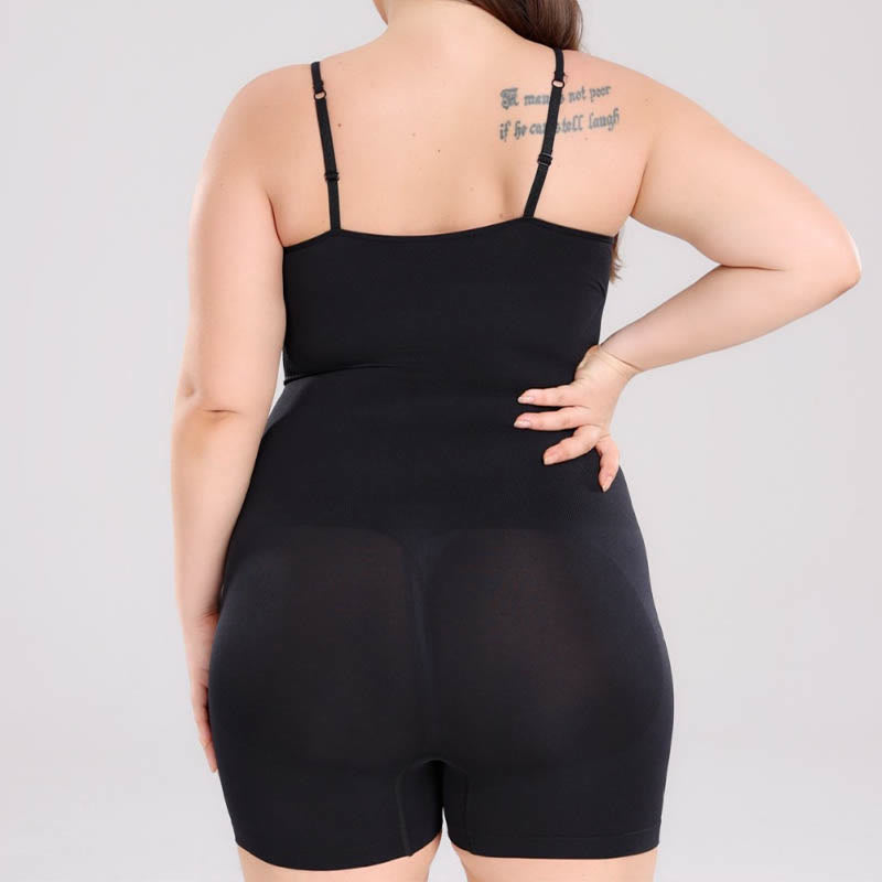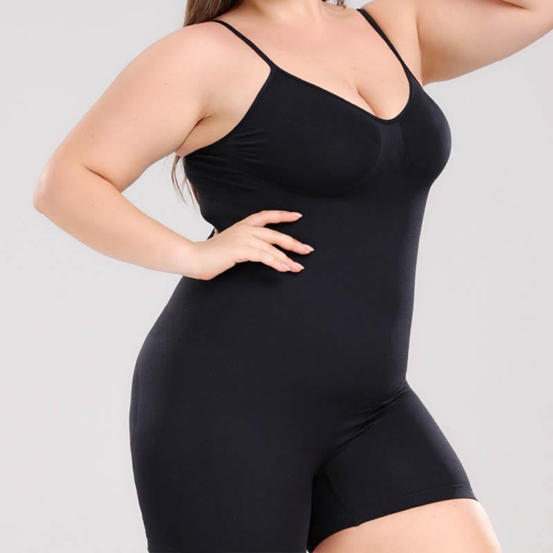 Our seamless mid-thigh bodysuit provides moderate compression to smooth your belly, shrink your waistline, and hide lumps, enhancing your natural shape.