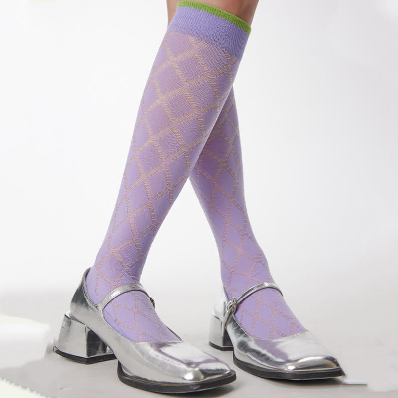 Purple Diamond Pattern Glass Sheer Compression Socks