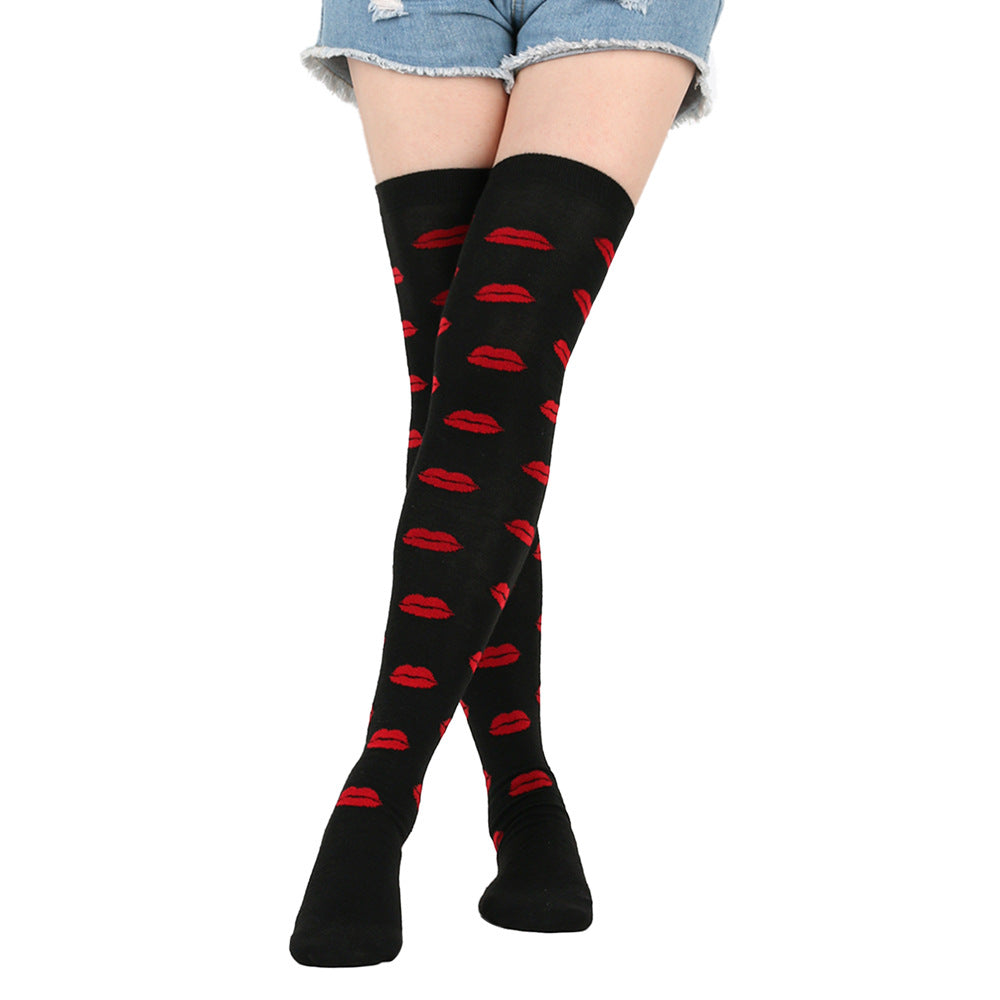 Red Lips Party Thigh High Socks(5 Pairs)