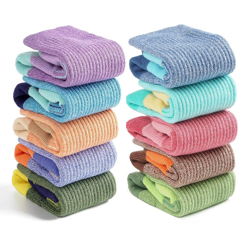 Striped Color-Block Moisture-Wicking Compression Socks(5 Pairs)