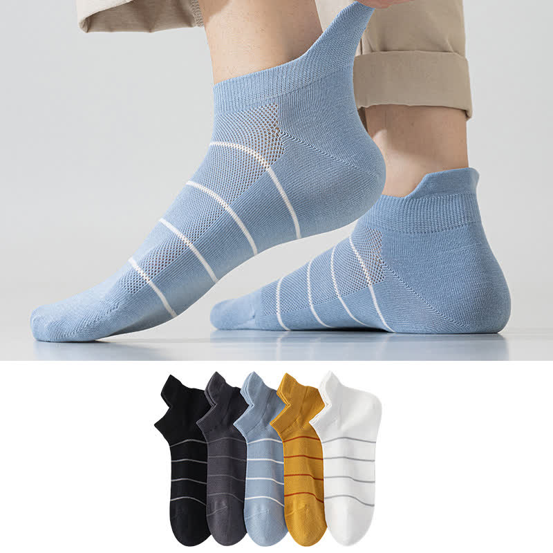 Striped Cotton Mesh Breathable Ankle Compression Socks(5 Pairs)